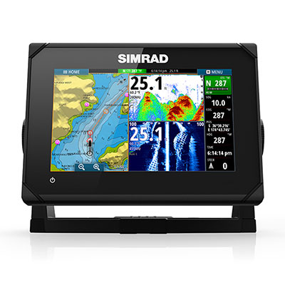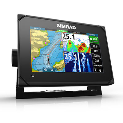 Simrad GO7, 7″ Multi-touch chart plotter with built in Echosounder, GPS and NMEA 2000 interface. No Charts. Comes with HDI Skimmer 455/800 transducer. (9 pin Black Connector).